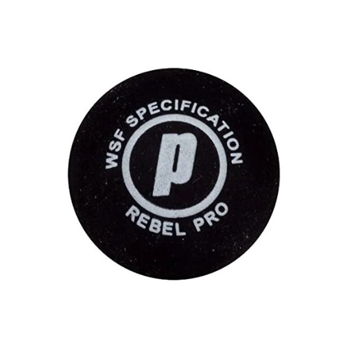 כדור Prince Rebel לניגון סקווש ומטקות. מתאים לשחקנים ברמה בינונית–מתקדמת. נקודה צהובה מסמנת קפיצה בינונית-נמוכה.